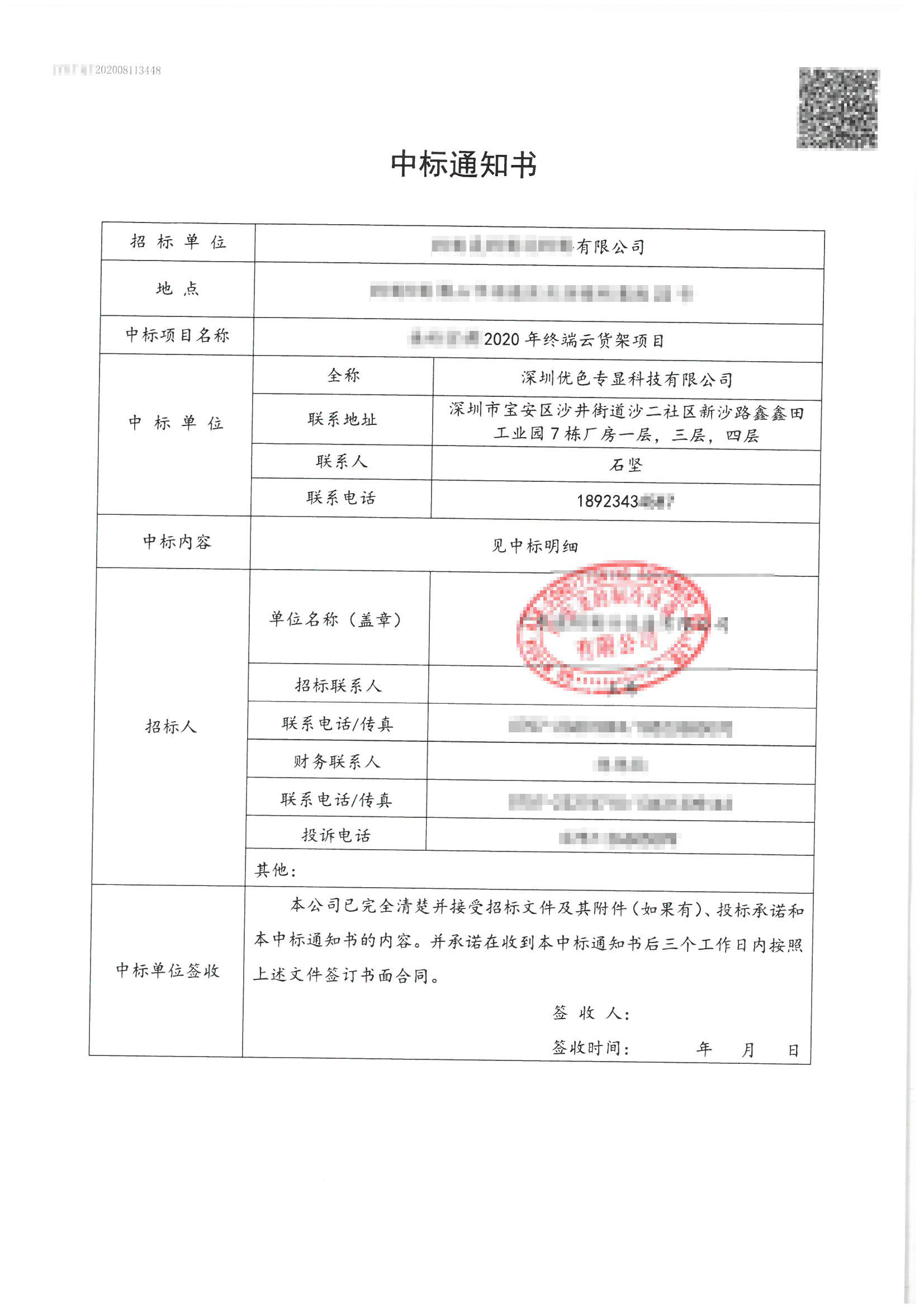 熱烈祝賀我司競標世界500強上市企業(yè)“2020年終端云貨架項目”于2020年8月21日順利中標。