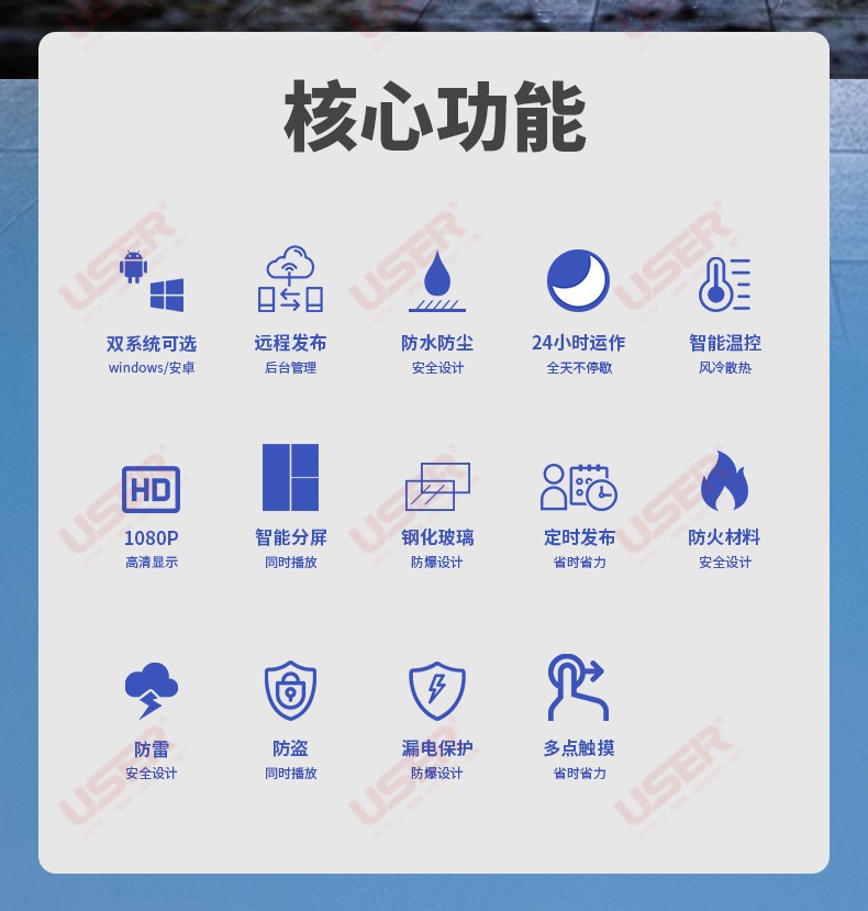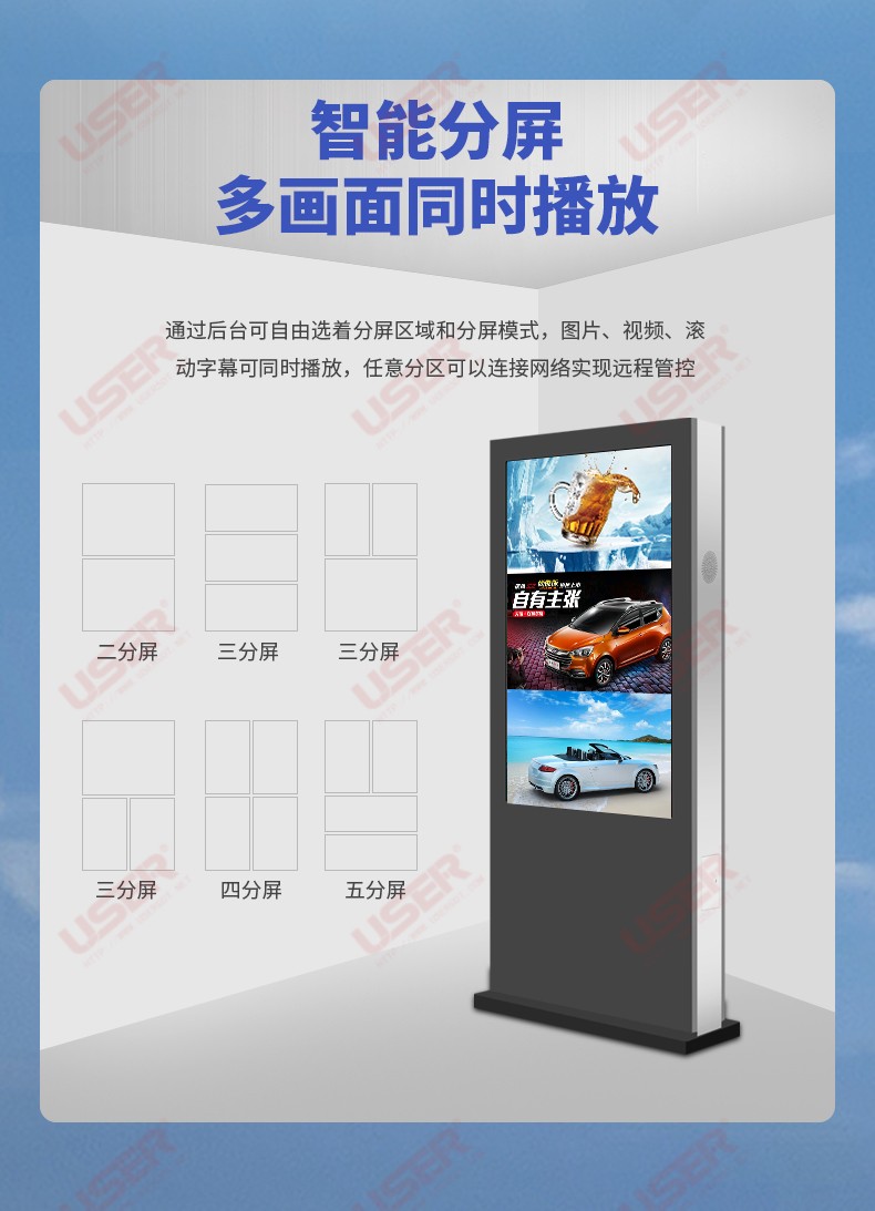 菜單產(chǎn)品中心Product center 液晶廣告機 壁掛式廣告機 落地立式廣告機 電梯超薄廣告機 車(chē)載廣告機 高亮廣告機 戶(hù)外廣告機 液晶拼接屏 專(zhuān)業(yè)液晶拼接屏 4K液晶拼接屏 廣告拼接屏 無(wú)縫液晶拼接屏 觸摸液晶拼接屏 LED顯示屏 觸控一體機 壁掛式觸控一體機 立式觸控一體機 斜面觸控一體機 智能家居觸控一體機 戶(hù)外觸控一體機 液晶電子白板 教育電子白板 會(huì )議電子白板 工控一體機 觸摸顯示器 紅外觸摸顯示器 電容觸摸顯示器 電阻觸摸顯示器 聲波觸摸顯示器 納米觸摸顯示器 液晶監視器 專(zhuān)業(yè)級監視器 4K監視器 嵌入式監視器 機架式監視器 開(kāi)放式監視器 SDI監視器 高亮監視器 廣播級監視器 工業(yè)顯示器 4K顯示器 機架式顯示器 開(kāi)放式顯示器 醫療顯示器 KVM顯示器 指揮室顯示器 智慧校園產(chǎn)品 專(zhuān)業(yè)定制商顯 多屏廣告機 多功能觸控一體機 多功能廣告機 微信打印廣告機 魔鏡廣告機 透明廣告機 全息廣告機 條形屏廣告機 旋轉廣告機 裸眼3D廣告機 人工智能產(chǎn)品 顯示配套設備 拼接配套設備 廣告機播放盒 OPS播放盒 拼接支架 移動(dòng)支架 相關(guān)軟件 吊頂支架 線(xiàn)材 木架 蜂窩箱 桌面底座 熱門(mén)產(chǎn)品 →優(yōu)色3.5mm超窄邊46寸液晶拼接屏→優(yōu)色49寸3.5mm超窄邊液晶拼接屏→優(yōu)色3.5mm超窄邊55寸液晶拼接屏 您的位置:首頁(yè) → 公司產(chǎn)品 → 液晶廣告機 → 戶(hù)外廣告機 43寸戶(hù)外落地廣告機類(lèi)別:戶(hù)外廣告機 簡(jiǎn)介:液晶尺寸:43英寸 1.外殼材質(zhì)全鍍鋅鋼板制柜體,外表面進(jìn)口金屬漆,防磁、 防靜電、進(jìn)口的防水材質(zhì),整機采用IP65防水,戶(hù)外全天候防水防塵,防盜、防爆等設計; 2.嚴格電氣保護:漏電、過(guò)載、... 在線(xiàn)咨詢(xún) 返回列表 產(chǎn)品說(shuō)明 相關(guān)產(chǎn)品 55寸戶(hù)外壁掛廣告機 55寸戶(hù)外落地廣告機 49寸戶(hù)外落地廣告機 43寸戶(hù)外落地廣告機 32寸戶(hù)外落地廣告機 65寸戶(hù)外燈桿屏_智慧路燈屏