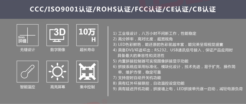 菜單產(chǎn)品中心Product center 液晶廣告機 壁掛式廣告機 落地立式廣告機 電梯超薄廣告機 車(chē)載廣告機 高亮廣告機 戶(hù)外廣告機 液晶拼接屏 專(zhuān)業(yè)液晶拼接屏 4K液晶拼接屏 廣告拼接屏 無(wú)縫液晶拼接屏 觸摸液晶拼接屏 LED顯示屏 觸控一體機 壁掛式觸控一體機 立式觸控一體機 斜面觸控一體機 智能家居觸控一體機 戶(hù)外觸控一體機 液晶電子白板 教育電子白板 會(huì )議電子白板 工控一體機 觸摸顯示器 紅外觸摸顯示器 電容觸摸顯示器 電阻觸摸顯示器 聲波觸摸顯示器 納米觸摸顯示器 液晶監視器 專(zhuān)業(yè)級監視器 4K監視器 嵌入式監視器 機架式監視器 開(kāi)放式監視器 SDI監視器 高亮監視器 廣播級監視器 工業(yè)顯示器 4K顯示器 機架式顯示器 開(kāi)放式顯示器 醫療顯示器 KVM顯示器 指揮室顯示器 智慧校園產(chǎn)品 專(zhuān)業(yè)定制商顯 多屏廣告機 多功能觸控一體機 多功能廣告機 微信打印廣告機 魔鏡廣告機 透明廣告機 全息廣告機 條形屏廣告機 旋轉廣告機 裸眼3D廣告機 人工智能產(chǎn)品 顯示配套設備 拼接配套設備 廣告機播放盒 OPS播放盒 拼接支架 移動(dòng)支架 相關(guān)軟件 吊頂支架 線(xiàn)材 木架 蜂窩箱 桌面底座 熱門(mén)產(chǎn)品 →優(yōu)色3.5mm超窄邊46寸液晶拼接屏→優(yōu)色49寸3.5mm超窄邊液晶拼接屏→優(yōu)色3.5mm超窄邊55寸液晶拼接屏 您的位置:首頁(yè) → 公司產(chǎn)品 → LED顯示屏 58寸LED拼接屏小間距P1.6全彩LED顯示屏落地吊掛無(wú)縫監控電視墻類(lèi)別:LED顯示屏 簡(jiǎn)介: 在線(xiàn)咨詢(xún) 返回列表 產(chǎn)品說(shuō)明 58寸LED拼接屏小間距P1.6全彩LED顯示屏落地吊掛無(wú)縫監控電視墻 相關(guān)產(chǎn)品 前維護P8戶(hù)外全彩LED顯示屏 裸眼3D戶(hù)外P4全彩LED顯示屏 酒吧KTV酒店P(guān)2.5室內全彩LED顯示屏 會(huì )議室舞臺P1.86室內全彩LED顯示屏 P6戶(hù)外全彩LED顯示屏 P4室內全彩LED顯示屏