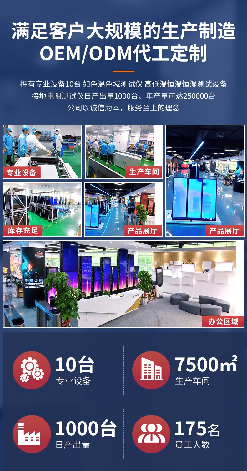 菜單產(chǎn)品中心Product center 液晶廣告機 壁掛式廣告機 落地立式廣告機 電梯超薄廣告機 車(chē)載廣告機 高亮廣告機 戶(hù)外廣告機 液晶拼接屏 專(zhuān)業(yè)液晶拼接屏 4K液晶拼接屏 廣告拼接屏 無(wú)縫液晶拼接屏 觸摸液晶拼接屏 LED顯示屏 觸控一體機 壁掛式觸控一體機 立式觸控一體機 斜面觸控一體機 智能家居觸控一體機 戶(hù)外觸控一體機 液晶電子白板 教育電子白板 會(huì )議電子白板 工控一體機 觸摸顯示器 紅外觸摸顯示器 電容觸摸顯示器 電阻觸摸顯示器 聲波觸摸顯示器 納米觸摸顯示器 液晶監視器 專(zhuān)業(yè)級監視器 4K監視器 嵌入式監視器 機架式監視器 開(kāi)放式監視器 SDI監視器 高亮監視器 廣播級監視器 工業(yè)顯示器 4K顯示器 機架式顯示器 開(kāi)放式顯示器 醫療顯示器 KVM顯示器 指揮室顯示器 智慧校園產(chǎn)品 專(zhuān)業(yè)定制商顯 多屏廣告機 多功能觸控一體機 多功能廣告機 微信打印廣告機 魔鏡廣告機 透明廣告機 全息廣告機 條形屏廣告機 旋轉廣告機 裸眼3D廣告機 人工智能產(chǎn)品 顯示配套設備 拼接配套設備 廣告機播放盒 OPS播放盒 拼接支架 移動(dòng)支架 相關(guān)軟件 吊頂支架 線(xiàn)材 木架 蜂窩箱 桌面底座 熱門(mén)產(chǎn)品 →優(yōu)色3.5mm超窄邊46寸液晶拼接屏→優(yōu)色49寸3.5mm超窄邊液晶拼接屏→優(yōu)色3.5mm超窄邊55寸液晶拼接屏 您的位置:首頁(yè) → 公司產(chǎn)品 → 液晶廣告機 → 落地立式廣告機 65寸落地立式廣告機類(lèi)別:落地立式廣告機 簡(jiǎn)介:液晶尺寸 65英寸 液晶規格 全新原廠(chǎng)原包LED商用液晶面板 分 辨 率 1920*1080 顯示面積 803.52*1428.48mm 顯示比例 16:9 可視角度 89/89/89/89(左/右/上/下) 亮 度 350cd/m2 背光類(lèi)型 ELED ... 在線(xiàn)咨詢(xún) 返回列表 產(chǎn)品說(shuō)明 相關(guān)產(chǎn)品 65寸落地立式廣告機 55寸立式廣告機 50寸立式落地廣告機 43寸立式落地廣告機 43寸46寸49寸55寸65寸86寸仿蘋(píng)果款立式廣告機 55寸超薄立式廣告機
