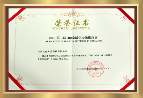 誠信安防供應商證書(shū)