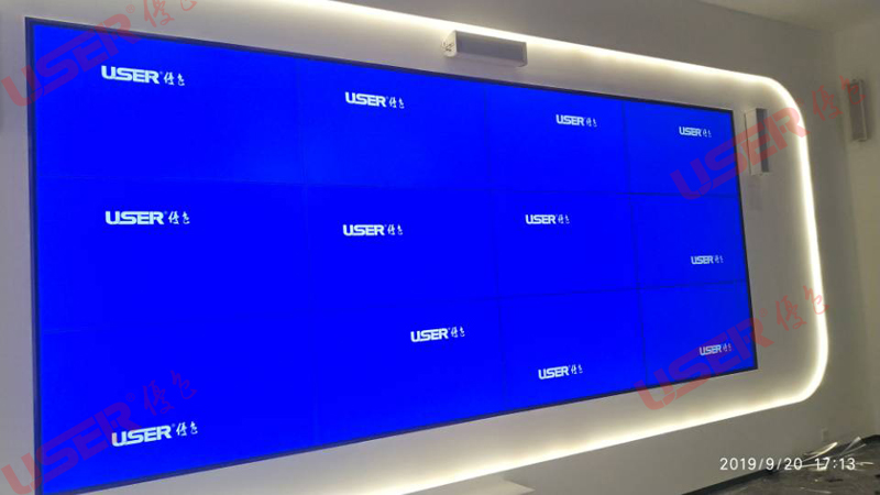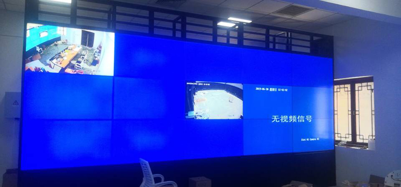 →唐山落地機柜55寸1.7mm液晶拼接屏竣工