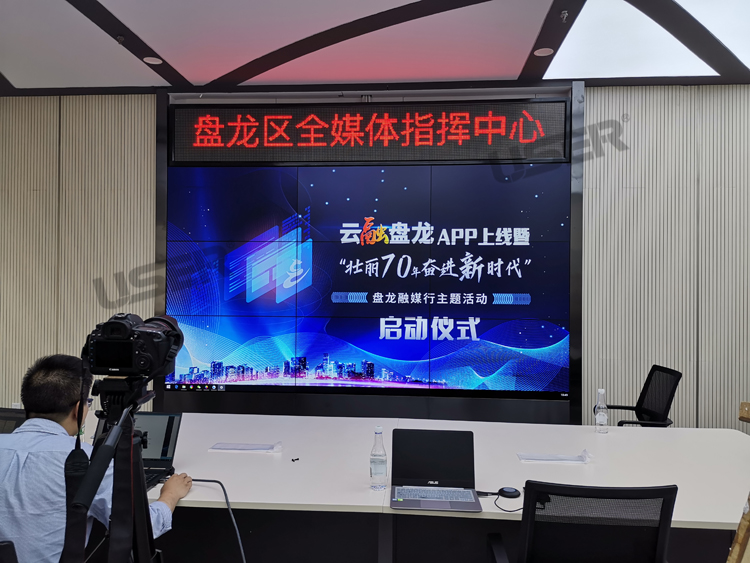 →昆明市盤(pán)龍區融媒體中心55寸拼接屏項目竣工