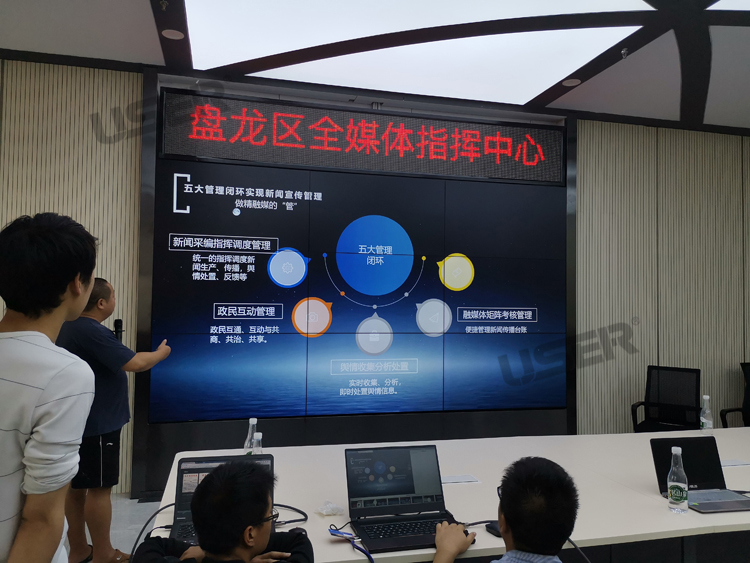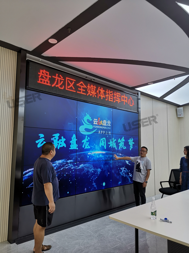 昆明市盤(pán)龍區融媒體中心55寸拼接屏項目竣工