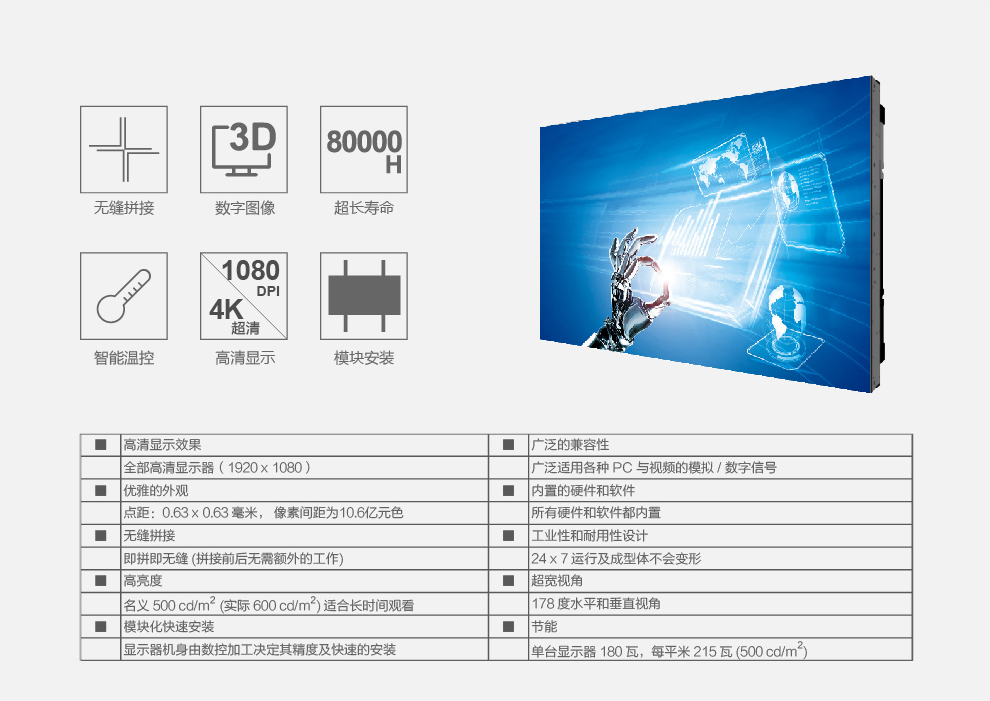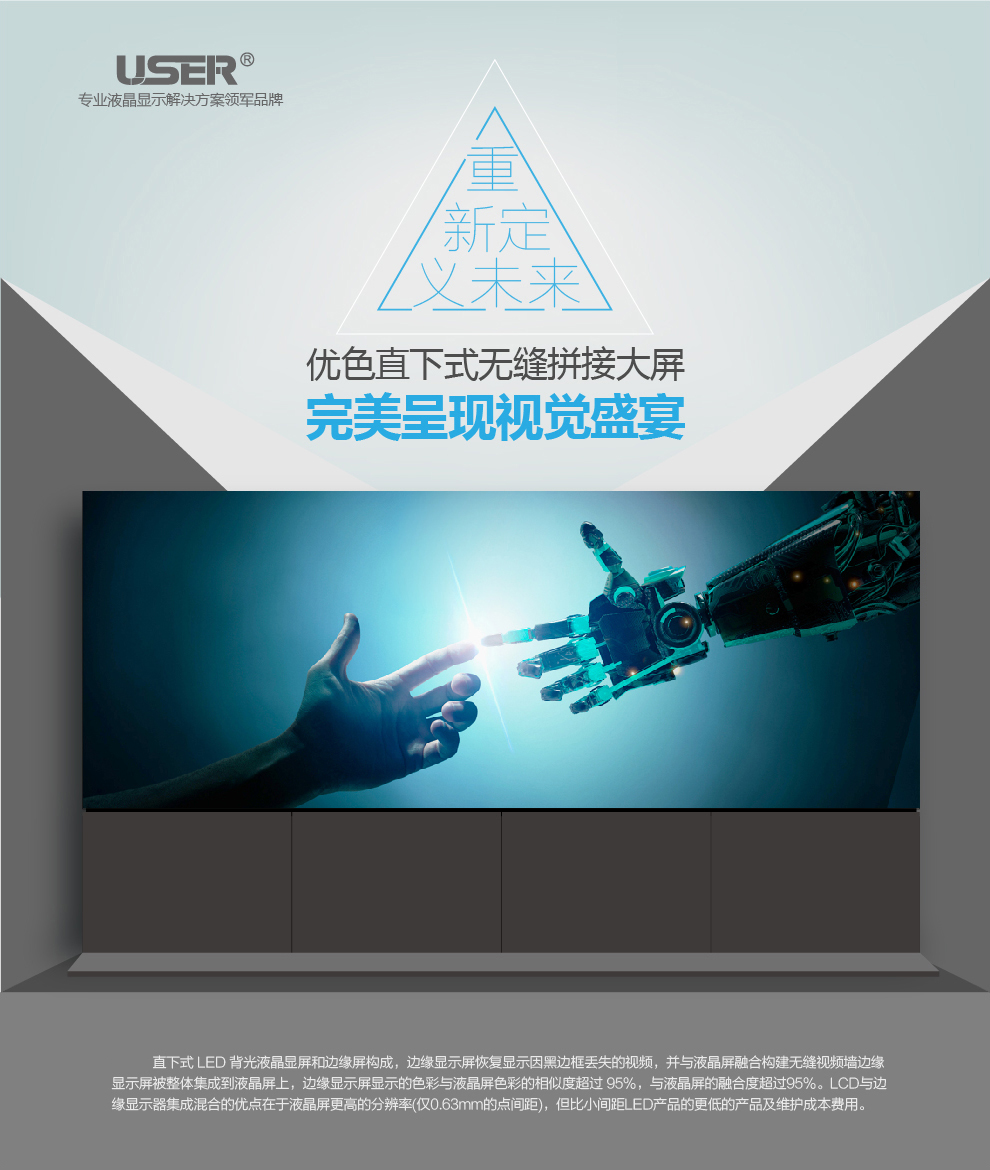菜單產(chǎn)品中心Product center 液晶廣告機 壁掛式廣告機 落地立式廣告機 電梯超薄廣告機 車(chē)載廣告機 高亮廣告機 戶(hù)外廣告機 液晶拼接屏 專(zhuān)業(yè)液晶拼接屏 4K液晶拼接屏 廣告拼接屏 無(wú)縫液晶拼接屏 觸摸液晶拼接屏 LED顯示屏 觸控一體機 壁掛式觸控一體機 立式觸控一體機 斜面觸控一體機 智能家居觸控一體機 戶(hù)外觸控一體機 液晶電子白板 教育電子白板 會(huì )議電子白板 工控一體機 觸摸顯示器 紅外觸摸顯示器 電容觸摸顯示器 電阻觸摸顯示器 聲波觸摸顯示器 納米觸摸顯示器 液晶監視器 專(zhuān)業(yè)級監視器 4K監視器 嵌入式監視器 機架式監視器 開(kāi)放式監視器 SDI監視器 高亮監視器 廣播級監視器 工業(yè)顯示器 4K顯示器 機架式顯示器 開(kāi)放式顯示器 醫療顯示器 KVM顯示器 指揮室顯示器 智慧校園產(chǎn)品 專(zhuān)業(yè)定制商顯 多屏廣告機 多功能觸控一體機 多功能廣告機 微信打印廣告機 魔鏡廣告機 透明廣告機 全息廣告機 條形屏廣告機 旋轉廣告機 裸眼3D廣告機 人工智能產(chǎn)品 顯示配套設備 拼接配套設備 廣告機播放盒 OPS播放盒 拼接支架 移動(dòng)支架 相關(guān)軟件 吊頂支架 線(xiàn)材 木架 蜂窩箱 桌面底座 熱門(mén)產(chǎn)品 →優(yōu)色3.5mm超窄邊46寸液晶拼接屏→優(yōu)色49寸3.5mm超窄邊液晶拼接屏→優(yōu)色3.5mm超窄邊55寸液晶拼接屏 您的位置:首頁(yè) → 公司產(chǎn)品 → 液晶拼接屏 → 無(wú)縫液晶拼接屏 優(yōu)色無(wú)縫拼縫液晶拼接屏類(lèi)別:無(wú)縫液晶拼接屏 簡(jiǎn)介: 在線(xiàn)咨詢(xún) 返回列表 產(chǎn)品說(shuō)明 相關(guān)產(chǎn)品 優(yōu)色無(wú)縫拼縫液晶拼接屏 光學(xué)補償無(wú)縫液晶拼接屏 光學(xué)板無(wú)縫液晶拼接屏