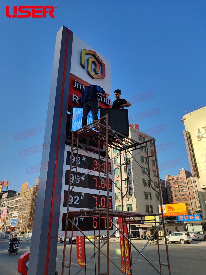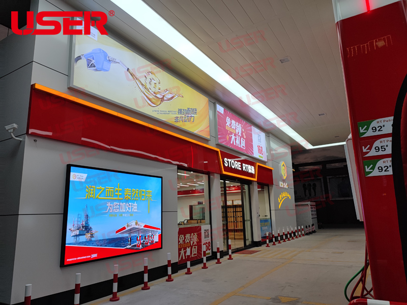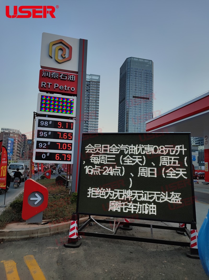 揭陽(yáng)市潤泰加油站采用優(yōu)色專(zhuān)顯P2高刷全彩led顯示屏全套整體解決方案