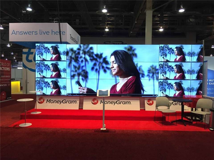 →上海驢媽媽旅游體驗店46寸3*3拼縫3.5mm液晶拼接屏項目