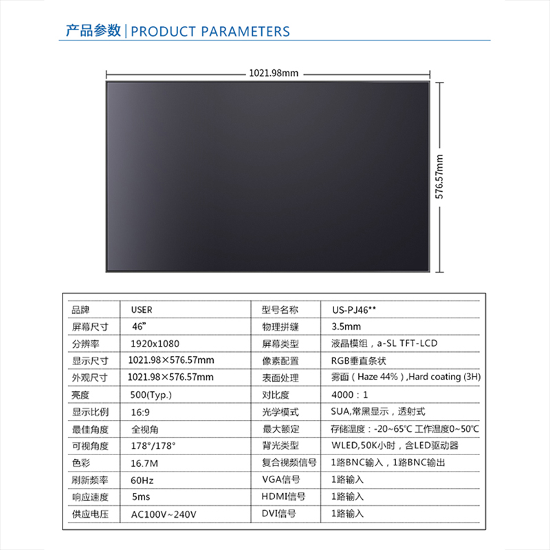 菜單產(chǎn)品中心Product center 液晶廣告機 壁掛式廣告機 落地立式廣告機 電梯超薄廣告機 車(chē)載廣告機 高亮廣告機 戶(hù)外廣告機 液晶拼接屏 專(zhuān)業(yè)液晶拼接屏 4K液晶拼接屏 廣告拼接屏 無(wú)縫液晶拼接屏 觸摸液晶拼接屏 LED顯示屏 觸控一體機 壁掛式觸控一體機 立式觸控一體機 斜面觸控一體機 智能家居觸控一體機 戶(hù)外觸控一體機 液晶電子白板 教育電子白板 會(huì )議電子白板 工控一體機 觸摸顯示器 紅外觸摸顯示器 電容觸摸顯示器 電阻觸摸顯示器 聲波觸摸顯示器 納米觸摸顯示器 液晶監視器 專(zhuān)業(yè)級監視器 4K監視器 嵌入式監視器 機架式監視器 開(kāi)放式監視器 SDI監視器 高亮監視器 廣播級監視器 工業(yè)顯示器 4K顯示器 機架式顯示器 開(kāi)放式顯示器 醫療顯示器 KVM顯示器 指揮室顯示器 智慧校園產(chǎn)品 專(zhuān)業(yè)定制商顯 多屏廣告機 多功能觸控一體機 多功能廣告機 微信打印廣告機 魔鏡廣告機 透明廣告機 全息廣告機 條形屏廣告機 旋轉廣告機 裸眼3D廣告機 人工智能產(chǎn)品 顯示配套設備 拼接配套設備 廣告機播放盒 OPS播放盒 拼接支架 移動(dòng)支架 相關(guān)軟件 吊頂支架 線(xiàn)材 木架 蜂窩箱 桌面底座 熱門(mén)產(chǎn)品 →優(yōu)色3.5mm超窄邊46寸液晶拼接屏→優(yōu)色49寸3.5mm超窄邊液晶拼接屏→優(yōu)色3.5mm超窄邊55寸液晶拼接屏 您的位置:首頁(yè) → 公司產(chǎn)品 → 液晶拼接屏 → 專(zhuān)業(yè)液晶拼接屏 優(yōu)色3.5mm超窄邊46寸液晶拼接屏類(lèi)別:專(zhuān)業(yè)液晶拼接屏 簡(jiǎn)介:◆ 型號:MG-PJ4601 ◆類(lèi)型:三星/LG/京東方BOE面板 ◆亮度:500-700cd/m2(可選) ◆超窄邊設計,拼縫3.5mm ◆ 在ISO9001嚴格的質(zhì)量控制體系下生產(chǎn)? ◆ 色彩均勻,圖像穩定,為拼接大畫(huà)面定制... 在線(xiàn)咨詢(xún) 返回列表 產(chǎn)品說(shuō)明 相關(guān)產(chǎn)品 優(yōu)色1.7mm超窄邊55寸液晶拼接屏 優(yōu)色49寸1.8mm超窄邊液晶拼接墻 優(yōu)色49寸3.5mm超窄邊液晶拼接屏 優(yōu)色3.5mm超窄邊55寸液晶拼接屏 優(yōu)色3.5mm超窄邊46寸液晶拼接屏 優(yōu)色5.3mm超窄邊55寸液晶拼接屏