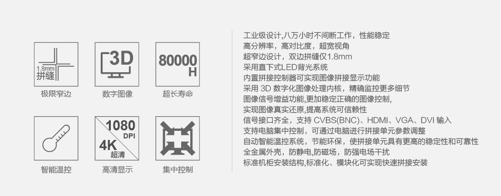 菜單產(chǎn)品中心Product center 液晶廣告機 壁掛式廣告機 落地立式廣告機 電梯超薄廣告機 車(chē)載廣告機 高亮廣告機 戶(hù)外廣告機 液晶拼接屏 專(zhuān)業(yè)液晶拼接屏 4K液晶拼接屏 廣告拼接屏 無(wú)縫液晶拼接屏 觸摸液晶拼接屏 LED顯示屏 觸控一體機 壁掛式觸控一體機 立式觸控一體機 斜面觸控一體機 智能家居觸控一體機 戶(hù)外觸控一體機 液晶電子白板 教育電子白板 會(huì )議電子白板 工控一體機 觸摸顯示器 紅外觸摸顯示器 電容觸摸顯示器 電阻觸摸顯示器 聲波觸摸顯示器 納米觸摸顯示器 液晶監視器 專(zhuān)業(yè)級監視器 4K監視器 嵌入式監視器 機架式監視器 開(kāi)放式監視器 SDI監視器 高亮監視器 廣播級監視器 工業(yè)顯示器 4K顯示器 機架式顯示器 開(kāi)放式顯示器 醫療顯示器 KVM顯示器 指揮室顯示器 智慧校園產(chǎn)品 專(zhuān)業(yè)定制商顯 多屏廣告機 多功能觸控一體機 多功能廣告機 微信打印廣告機 魔鏡廣告機 透明廣告機 全息廣告機 條形屏廣告機 旋轉廣告機 裸眼3D廣告機 人工智能產(chǎn)品 顯示配套設備 拼接配套設備 廣告機播放盒 OPS播放盒 拼接支架 移動(dòng)支架 相關(guān)軟件 吊頂支架 線(xiàn)材 木架 蜂窩箱 桌面底座 熱門(mén)產(chǎn)品 →優(yōu)色3.5mm超窄邊46寸液晶拼接屏→優(yōu)色49寸3.5mm超窄邊液晶拼接屏→優(yōu)色3.5mm超窄邊55寸液晶拼接屏 您的位置:首頁(yè) → 公司產(chǎn)品 → 液晶拼接屏 → 專(zhuān)業(yè)液晶拼接屏 優(yōu)色49寸1.8mm超窄邊液晶拼接墻類(lèi)別:專(zhuān)業(yè)液晶拼接屏 簡(jiǎn)介:◆ 型號:US-PJ46** ◆類(lèi)型:三星/LG/BOE面板 ◆亮度:500-700cd/m2(可選) ◆超窄邊設計,拼縫1.8mm ◆ 在ISO9001嚴格的質(zhì)量控制體系下生產(chǎn)? ◆ 色彩均勻,圖像穩定,為拼接大畫(huà)面定制功能 ... 在線(xiàn)咨詢(xún) 返回列表 產(chǎn)品說(shuō)明 相關(guān)產(chǎn)品 優(yōu)色1.7mm超窄邊55寸液晶拼接屏 優(yōu)色49寸1.8mm超窄邊液晶拼接墻 優(yōu)色49寸3.5mm超窄邊液晶拼接屏 優(yōu)色3.5mm超窄邊55寸液晶拼接屏 優(yōu)色3.5mm超窄邊46寸液晶拼接屏 優(yōu)色5.3mm超窄邊55寸液晶拼接屏