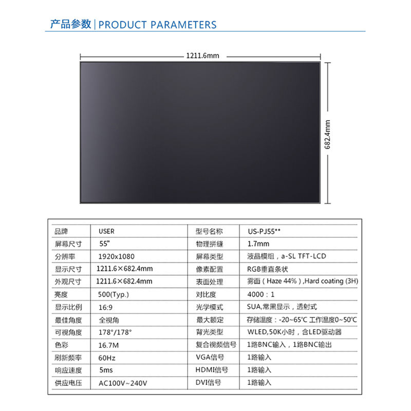 菜單產(chǎn)品中心Product center 液晶廣告機 壁掛式廣告機 落地立式廣告機 電梯超薄廣告機 車(chē)載廣告機 高亮廣告機 戶(hù)外廣告機 液晶拼接屏 專(zhuān)業(yè)液晶拼接屏 4K液晶拼接屏 廣告拼接屏 無(wú)縫液晶拼接屏 觸摸液晶拼接屏 LED顯示屏 觸控一體機 壁掛式觸控一體機 立式觸控一體機 斜面觸控一體機 智能家居觸控一體機 戶(hù)外觸控一體機 液晶電子白板 教育電子白板 會(huì )議電子白板 工控一體機 觸摸顯示器 紅外觸摸顯示器 電容觸摸顯示器 電阻觸摸顯示器 聲波觸摸顯示器 納米觸摸顯示器 液晶監視器 專(zhuān)業(yè)級監視器 4K監視器 嵌入式監視器 機架式監視器 開(kāi)放式監視器 SDI監視器 高亮監視器 廣播級監視器 工業(yè)顯示器 4K顯示器 機架式顯示器 開(kāi)放式顯示器 醫療顯示器 KVM顯示器 指揮室顯示器 智慧校園產(chǎn)品 專(zhuān)業(yè)定制商顯 多屏廣告機 多功能觸控一體機 多功能廣告機 微信打印廣告機 魔鏡廣告機 透明廣告機 全息廣告機 條形屏廣告機 旋轉廣告機 裸眼3D廣告機 人工智能產(chǎn)品 顯示配套設備 拼接配套設備 廣告機播放盒 OPS播放盒 拼接支架 移動(dòng)支架 相關(guān)軟件 吊頂支架 線(xiàn)材 木架 蜂窩箱 桌面底座 熱門(mén)產(chǎn)品 →優(yōu)色3.5mm超窄邊46寸液晶拼接屏→優(yōu)色49寸3.5mm超窄邊液晶拼接屏→優(yōu)色3.5mm超窄邊55寸液晶拼接屏 您的位置:首頁(yè) → 公司產(chǎn)品 → 液晶拼接屏 → 專(zhuān)業(yè)液晶拼接屏 優(yōu)色1.7mm超窄邊55寸液晶拼接屏類(lèi)別:專(zhuān)業(yè)液晶拼接屏 簡(jiǎn)介:◆ 型號:US-PJ55** ◆類(lèi)型:三星/LG/京東方BOE面板 ◆亮度:500-700cd/m2(可選) ◆超窄邊設計,拼縫1.7mm ◆ 在ISO9001嚴格的質(zhì)量控制體系下生產(chǎn)? ◆ 色彩均勻,圖像穩定,為拼接大畫(huà)面定制... 在線(xiàn)咨詢(xún) 返回列表 產(chǎn)品說(shuō)明 相關(guān)產(chǎn)品 優(yōu)色1.7mm超窄邊55寸液晶拼接屏 優(yōu)色49寸1.8mm超窄邊液晶拼接墻 優(yōu)色49寸3.5mm超窄邊液晶拼接屏 優(yōu)色3.5mm超窄邊55寸液晶拼接屏 優(yōu)色3.5mm超窄邊46寸液晶拼接屏 優(yōu)色5.3mm超窄邊55寸液晶拼接屏