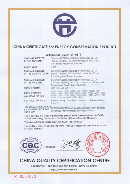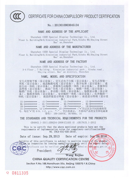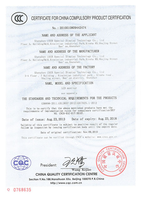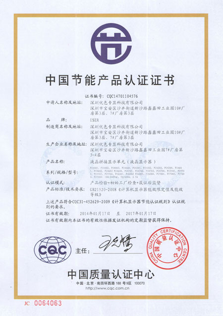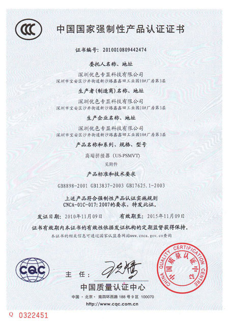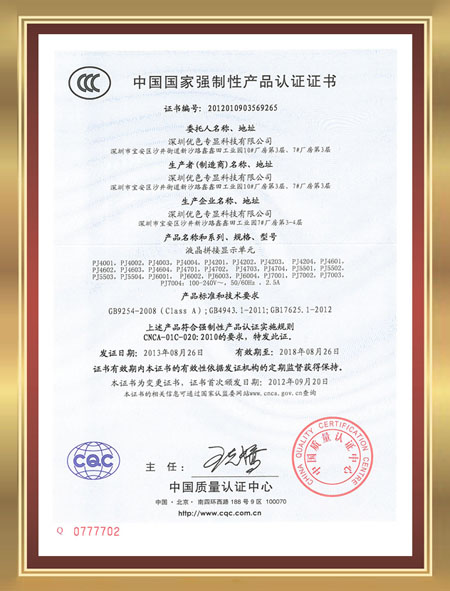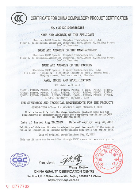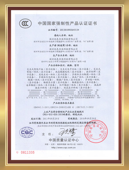 CCC證書(shū)(液晶拼接英文證書(shū))