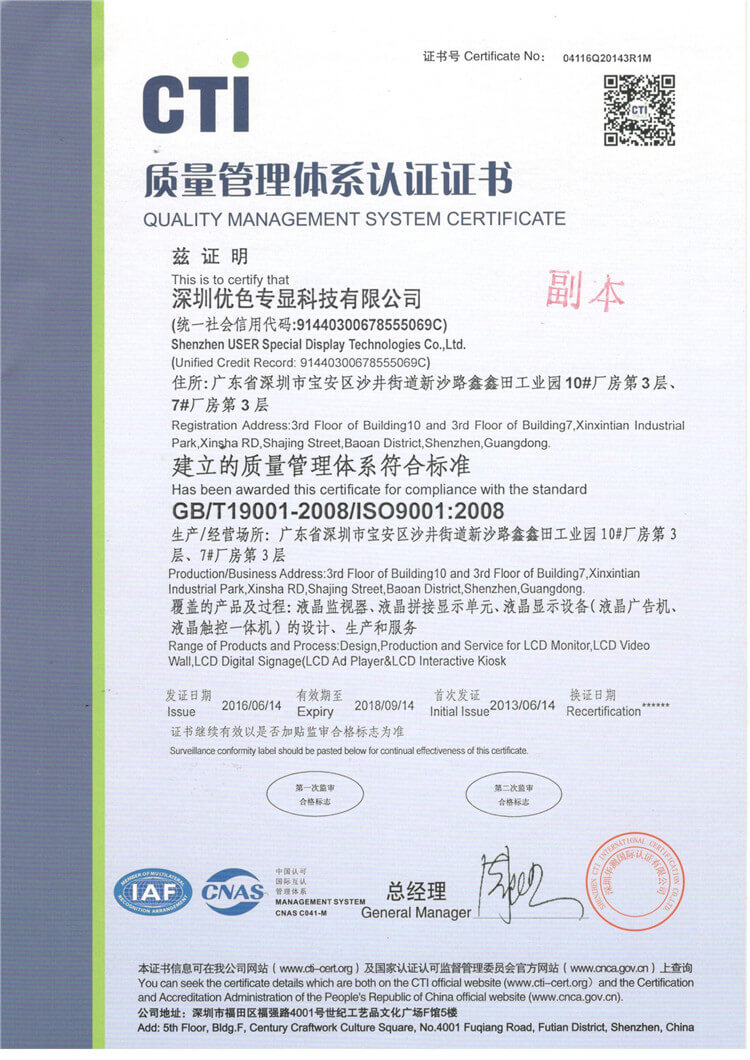 ISO9001:2008質(zhì)量管理體系證書(shū)